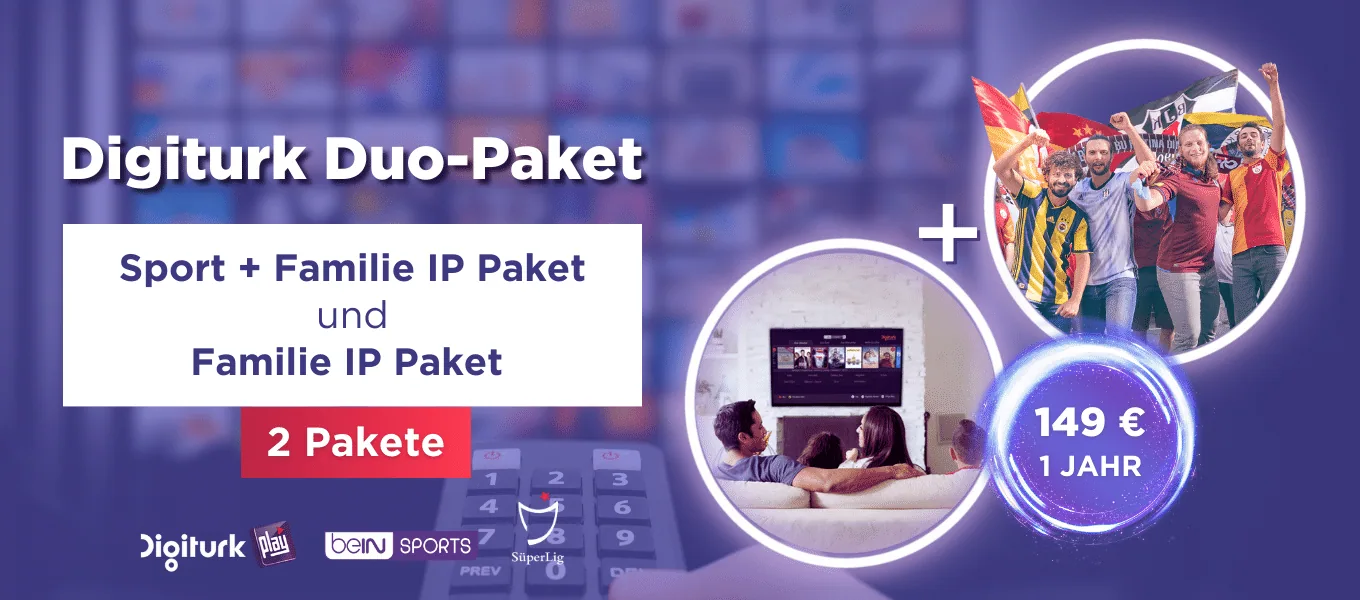 Dank Digiturk Euro erleben Sie nicht nur die Spannung der Süper Lig. Je nach gewähltem Paket können Sie auch hunderte von Kanälen in Full HD sehen. Außerdem gibt es kein Problem mit der Parabolantenne mehr, denn Digiturk Deutschland kann über das Internet mithilfe des IP-TV-Dienstes gestreamt werden. Um Digiturk Euro über das Internet zu streamen, verwenden Sie einfach die IPTV-unterstützte Box, die Digiturk Euro Ihnen gesendet hat, oder Ihren IPTV-unterstützten Satellitenmodem. Dafür reicht eine Internetverbindung mit 2 Mbit/s aus. Dieser Service ist einfach und qualitativ hochwertig. Digiturk Euro bietet Ihnen mit seinen umfassenden türkischen Programmen den besten Service mit Action, Drama, Liebe, Fantasy, Science-Fiction, Comedy und tausenden hochwertigen Dokumentationen.